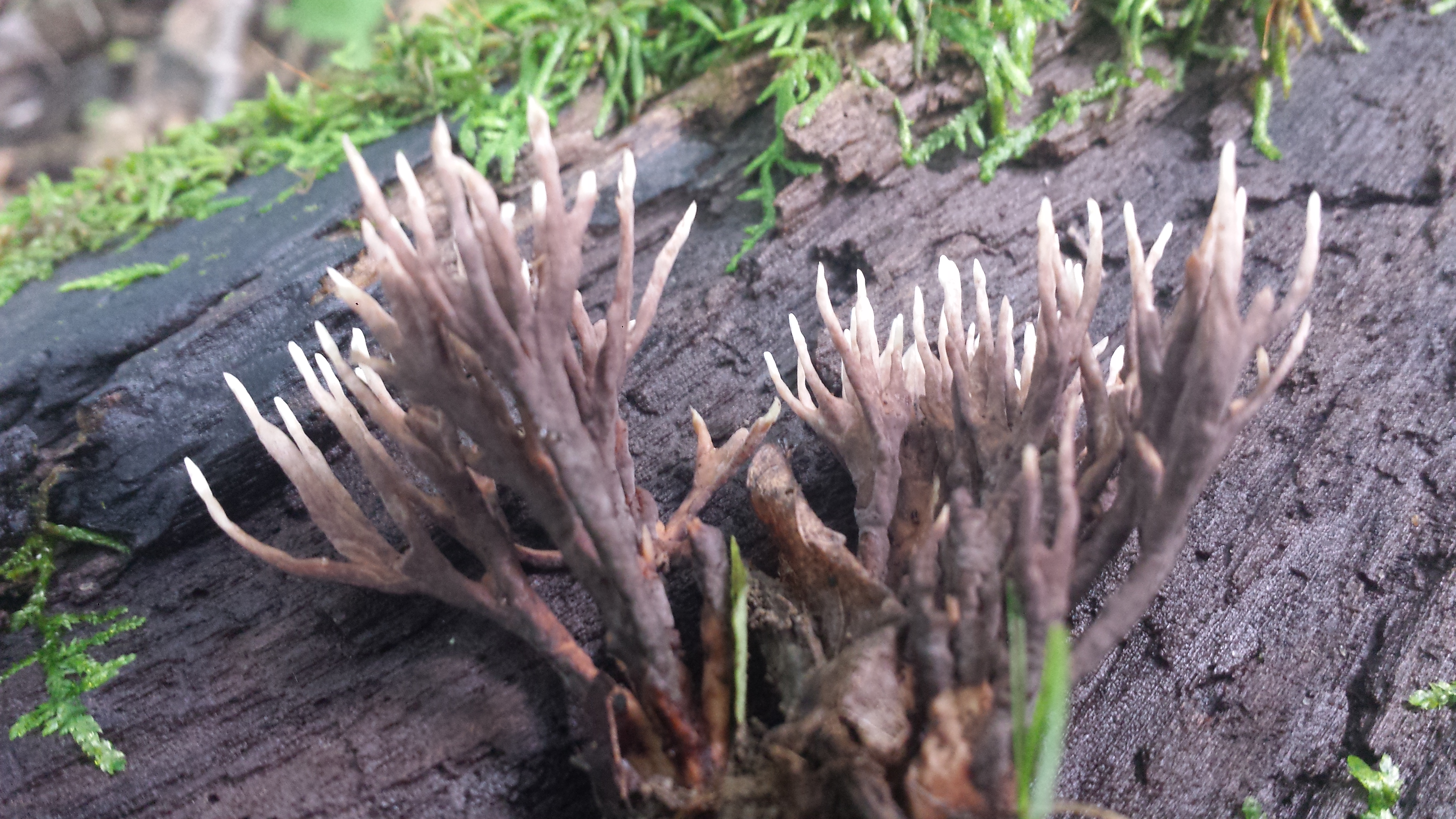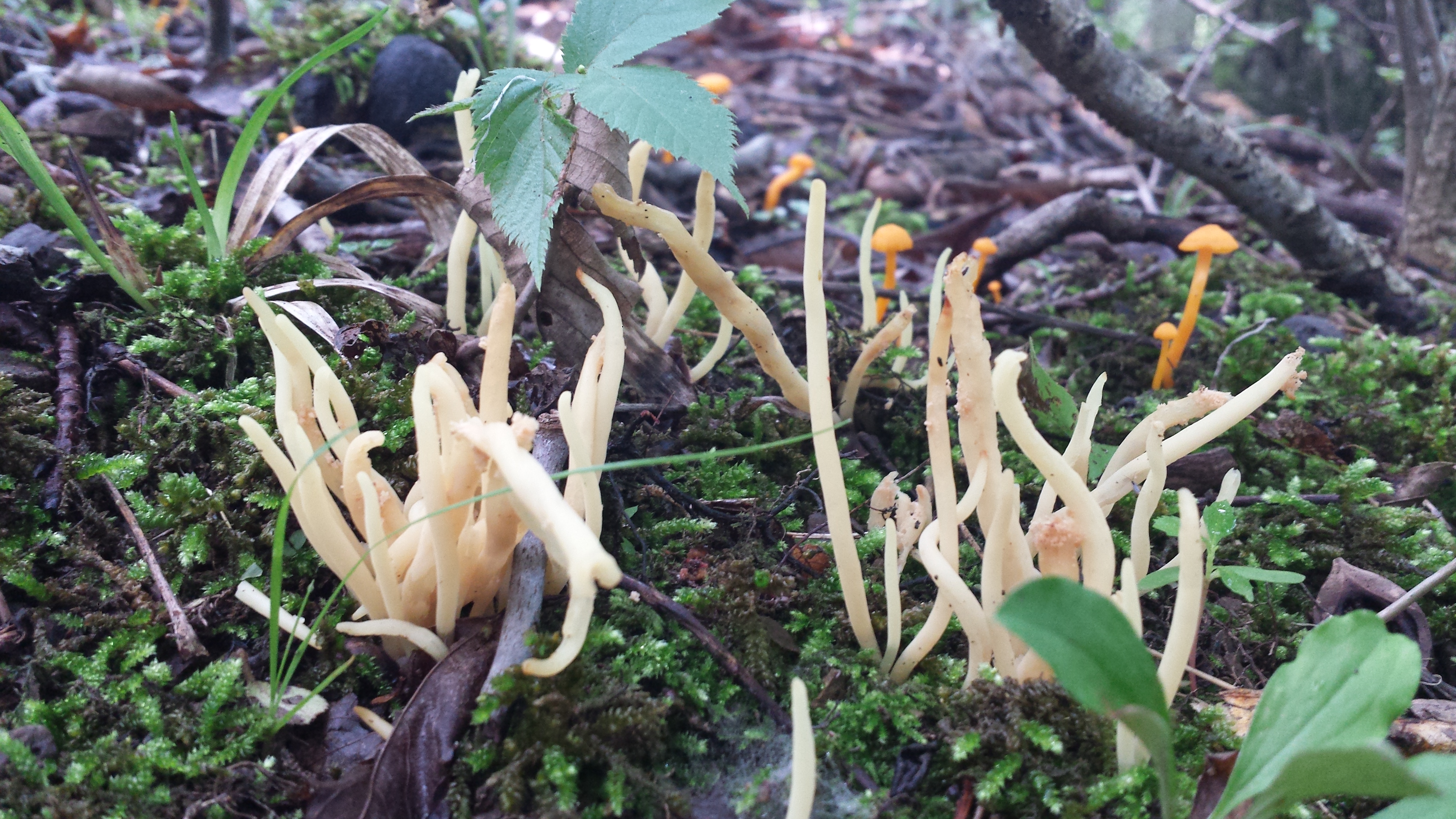 Name: Clavaria fumosa (possible) and Cantharellus minor in the background
